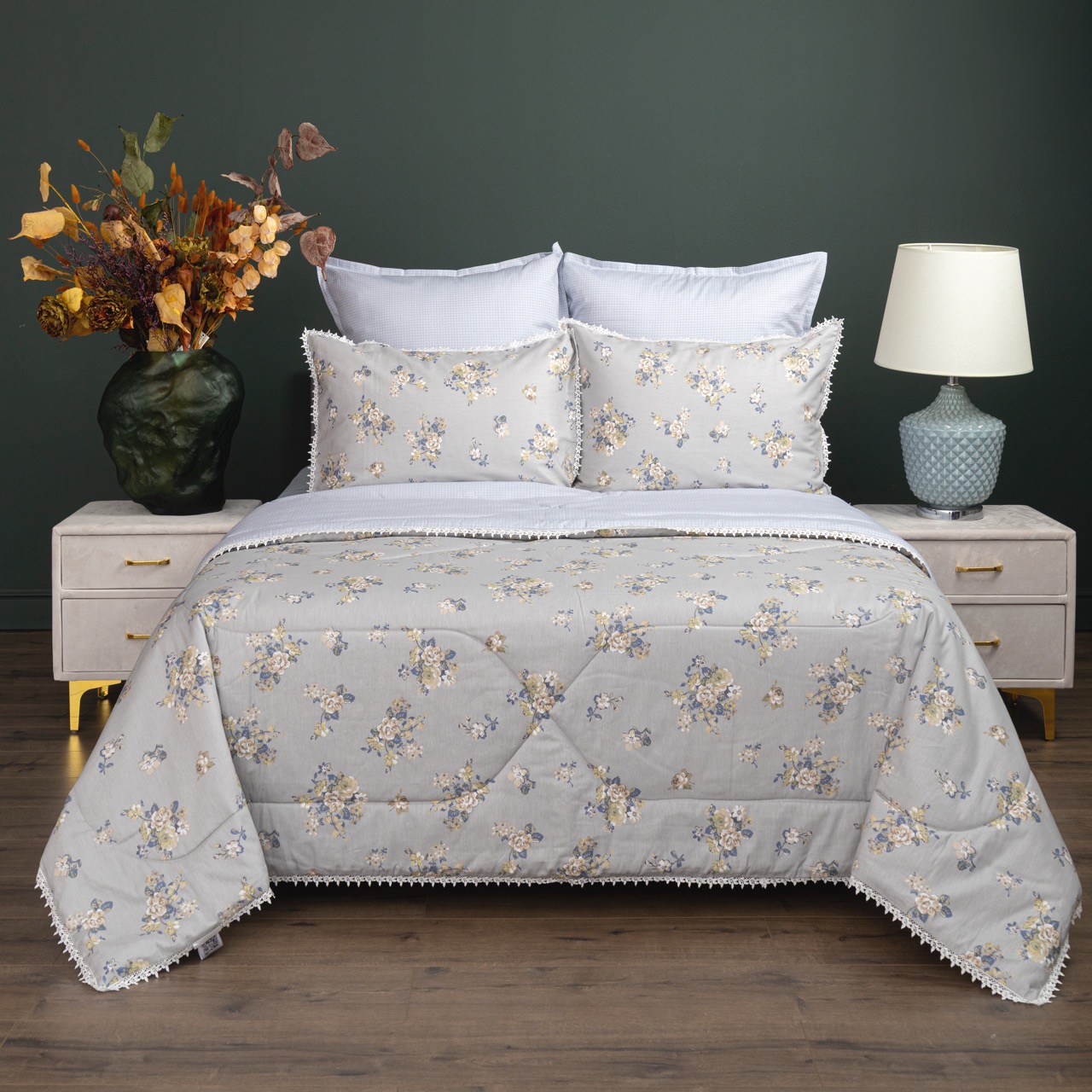 Одеяло: стеганое, ткань А/В, украшено кружевом по периметру — роскошь,которую можно потрогать.