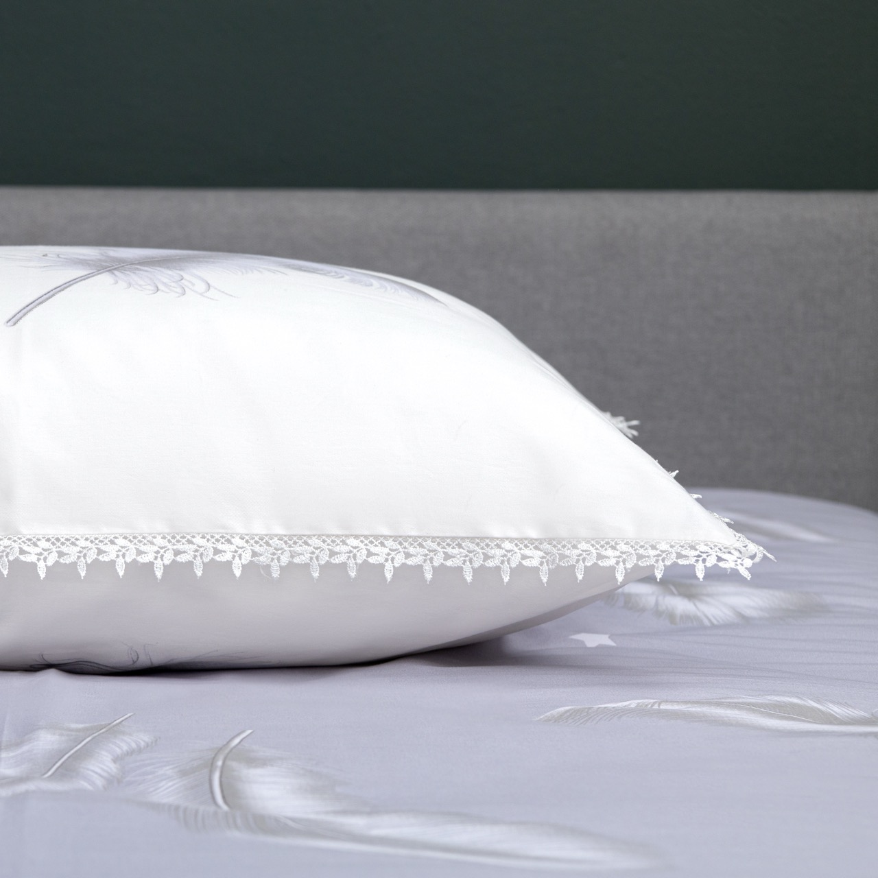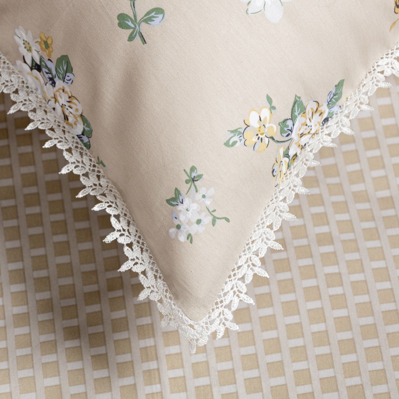Наволочки 50 × 70 см: ткань А, молния, изысканное кружево по периметру.