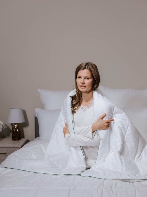Не лучший вариант — наполнители из пуха и пера водоплавающих птиц, а также синтетического происхождения. Оба плохо впитывают влагу и практически не отводят ее от тела. Отказаться стоит и от ватного одеяла по причине его громоздкости и приличного веса.